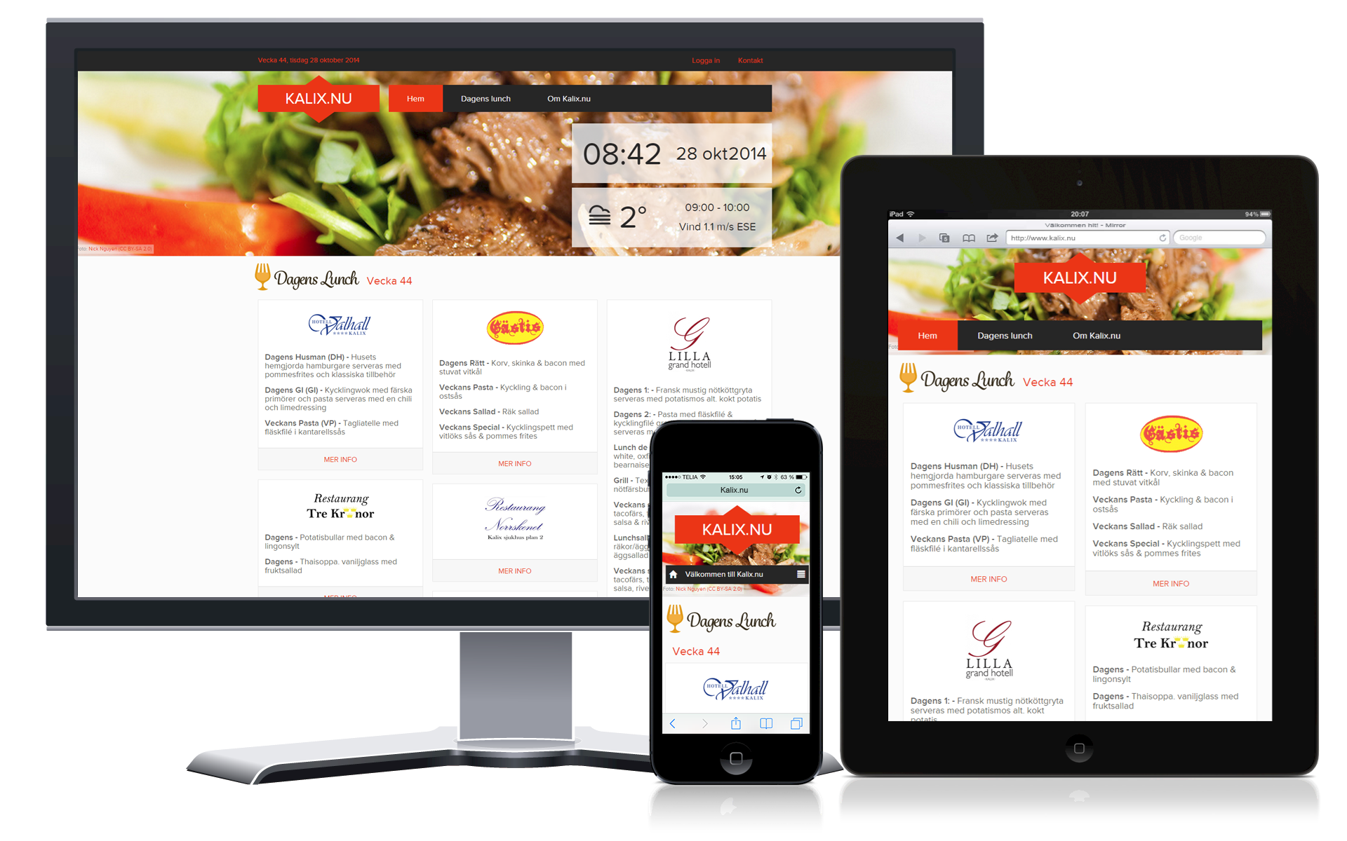 Kalix.nu har genom åren varit en välbesökt sida för hungriga Kalixbor. Här har besökarna kunnat ta del av lunchutbudet på ortens alla restauranger. Nu har vi gett sidan ett behövligt ansiktslyft och utvecklat en modernare och bättre lunchapplikation för restaurangerna att arbeta med.